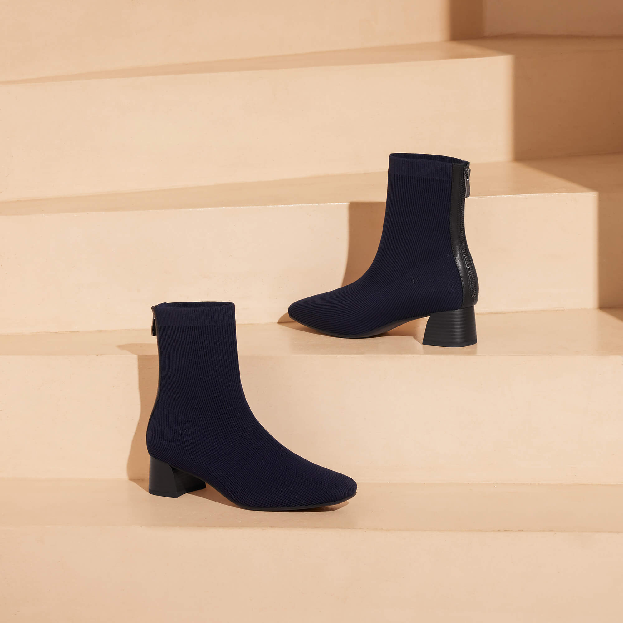 [Marcella] スクエアトゥ 撥水加工 バックファスナー付き ショートブーツ