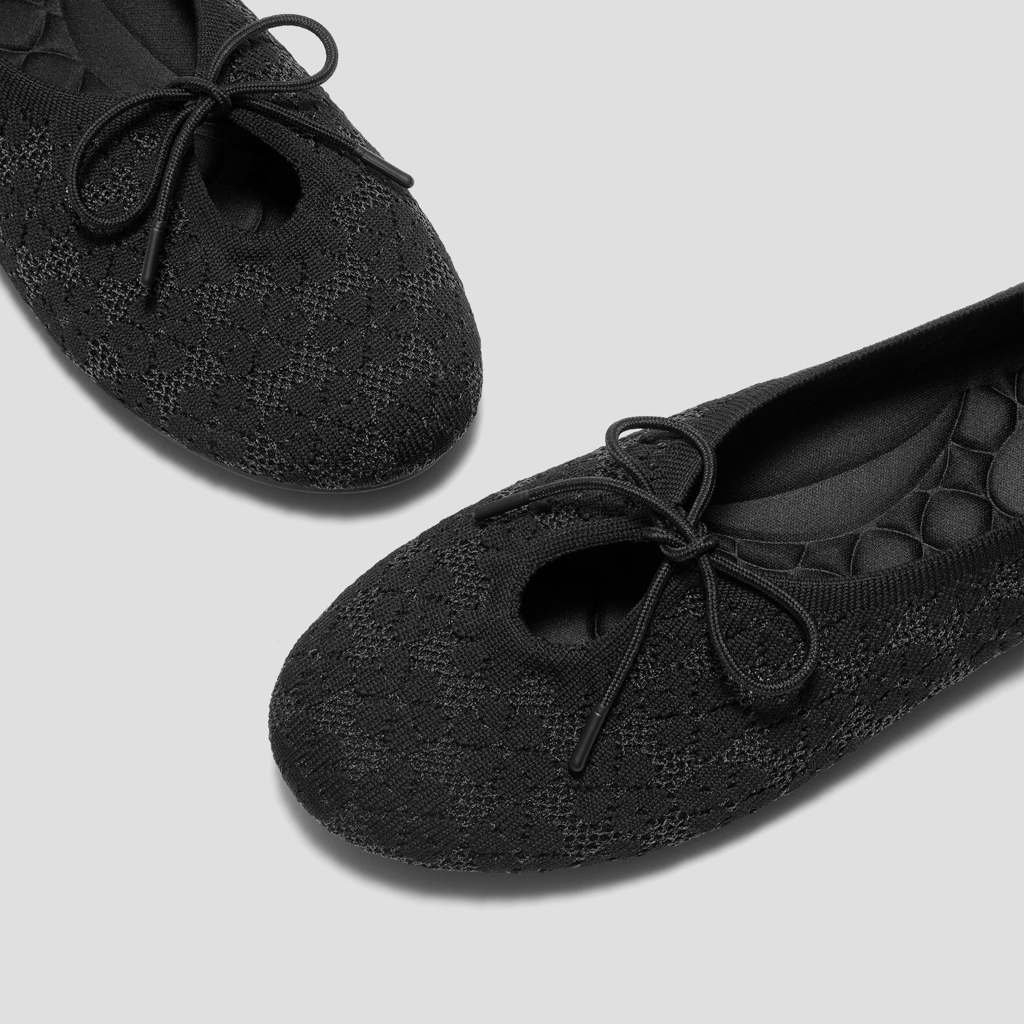 やわらかなニットアッパーが足のラインにやさしく沿い、レースアップのデザインがさりげなく上品な印象を添えます。かかとのクッションパッドと、足裏の負担を和らげるインソールで、朝から夕方まで安定した履き心地。