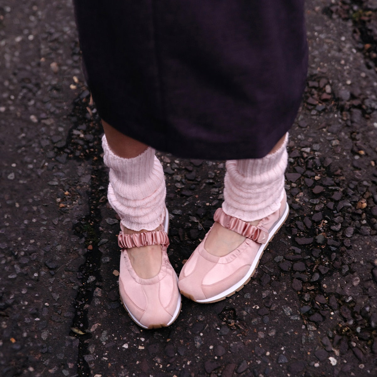 [Ayla] ラウンドトゥ サテン 厚底 メリージェーン スニーカー